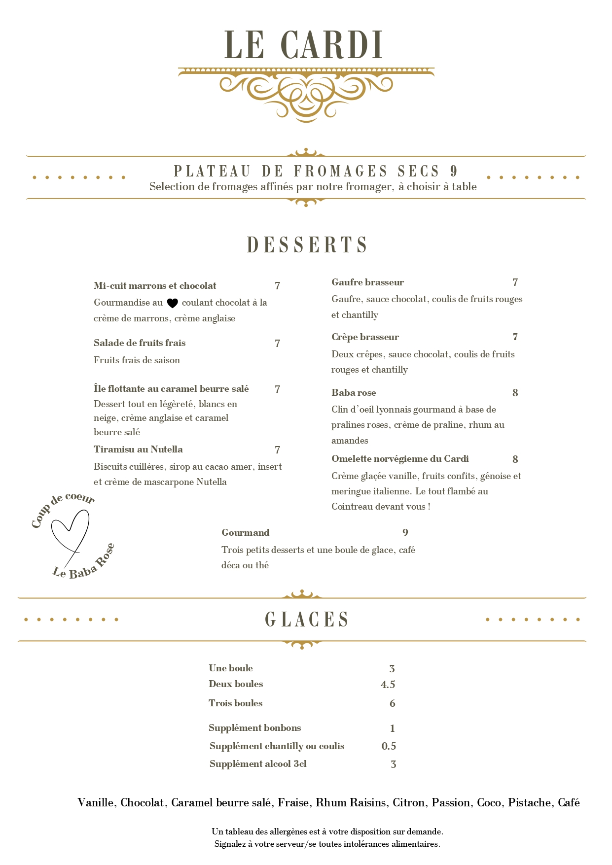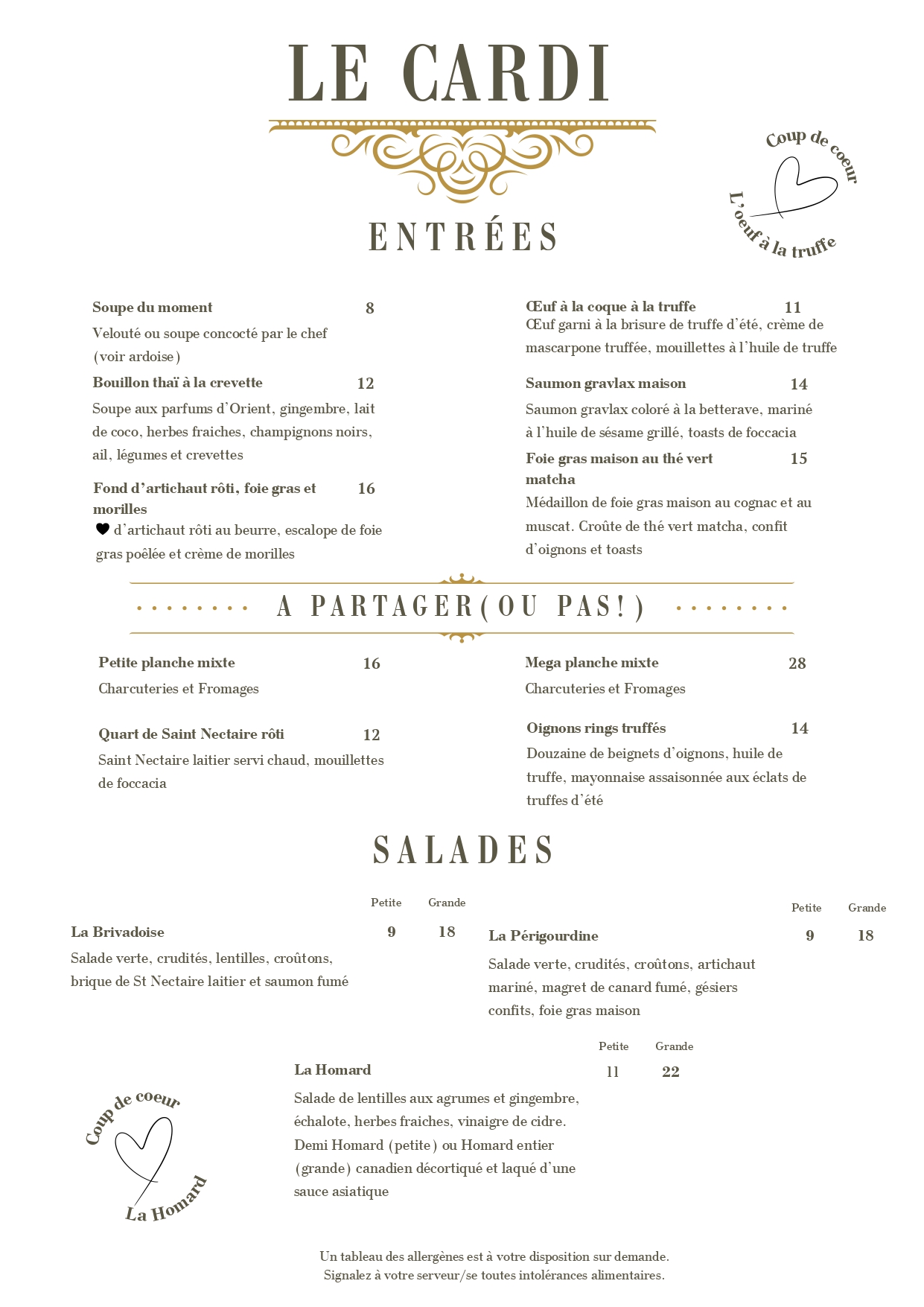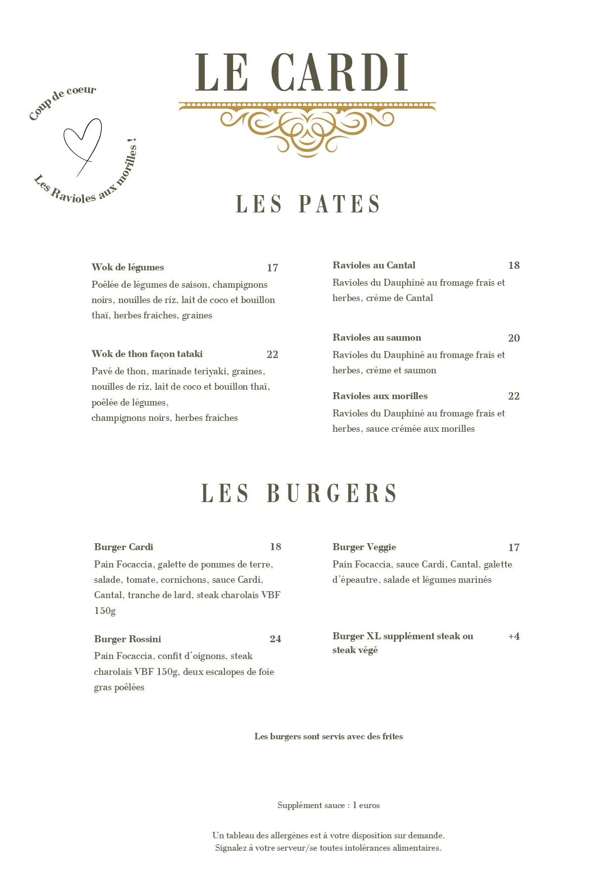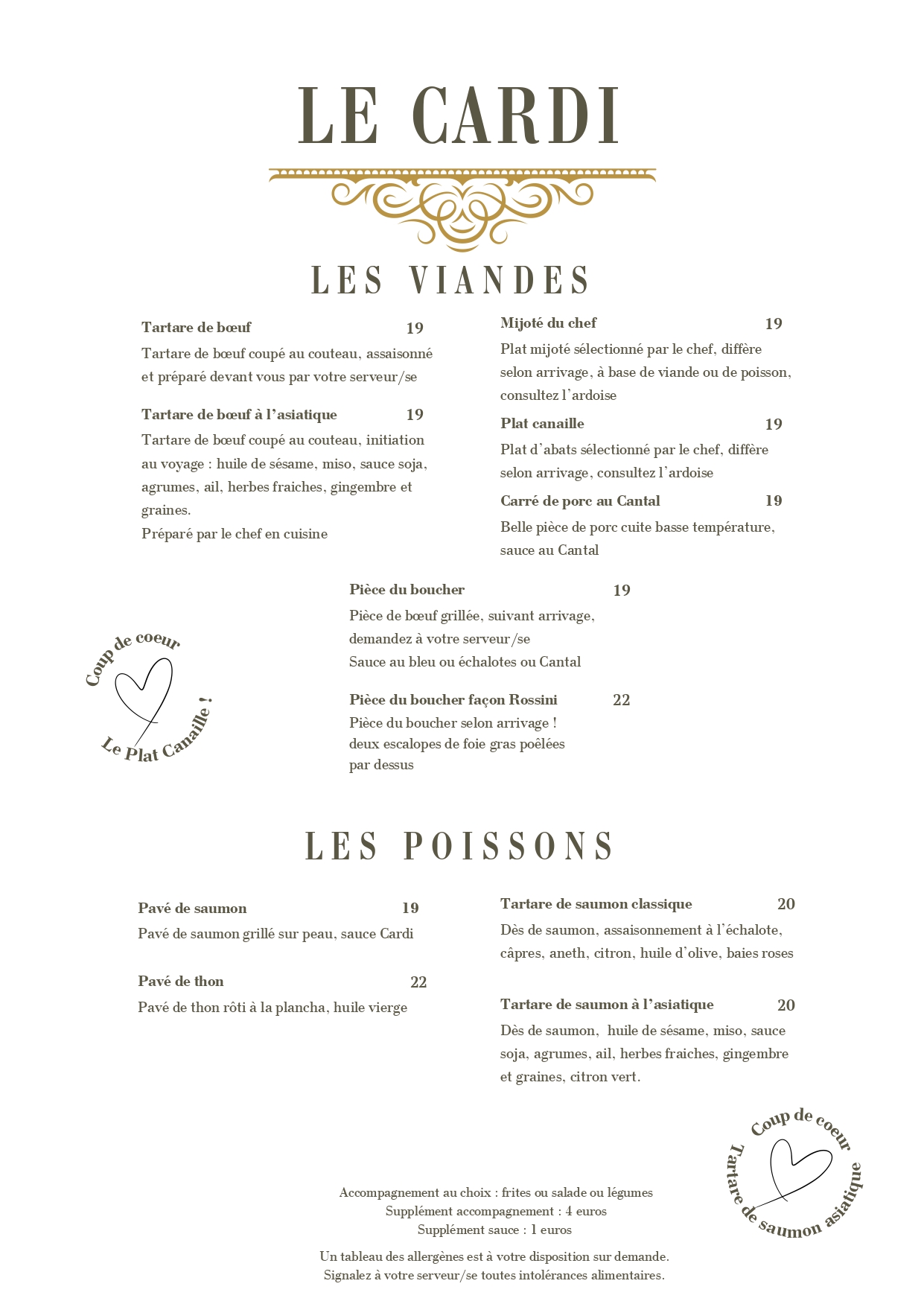 Notre carte Nous contacter Cardi - Votre restaurant et pub à Brioude en Haute Loire (43)PhotosPhotosPhotos